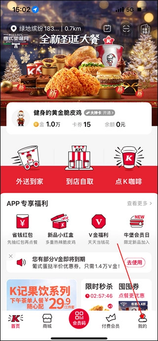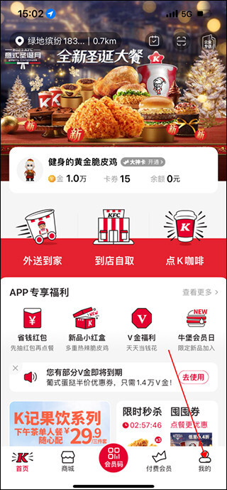 打开肯德基APP,进入APP首页后,点击页面右下角的“我的”按钮。