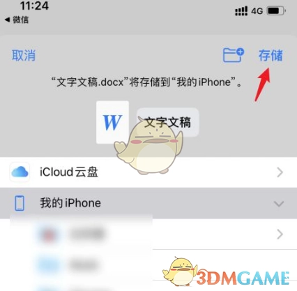 5、点击右上角的存储选项,这样就能把金山文档导出至手机里。