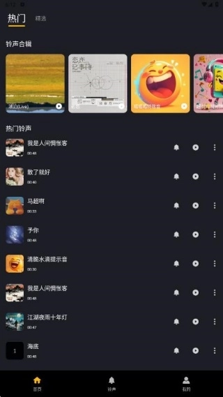 1、完成安装后进入首页,这里不仅呈现着热门铃声素材,还提供了合辑资源的分享。