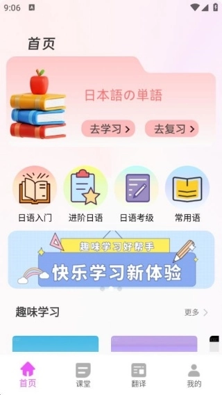 4、首页、课堂、翻译、我的等入口清晰明确,操作流程简便易懂,学习者能够迅速熟悉并使用各项功能。