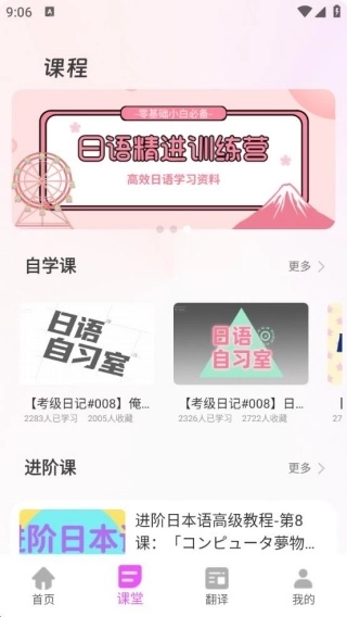 1、进入平台首页后,这里提供了各类日语学习资源,直接点击即可开始学习。