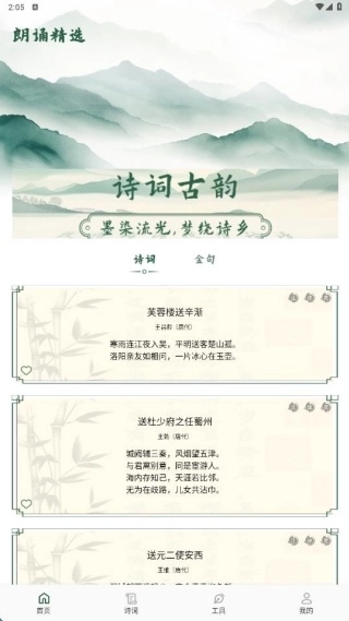 3、有声诵读声情并茂,专业主播以多样风格诠释诗词,时而激昂、时而婉转,闭上双眼便能领略诗词的韵律之美,沉醉其间。