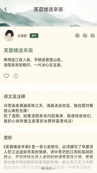 2、点击查看诗词详情,能获得注释等信息。