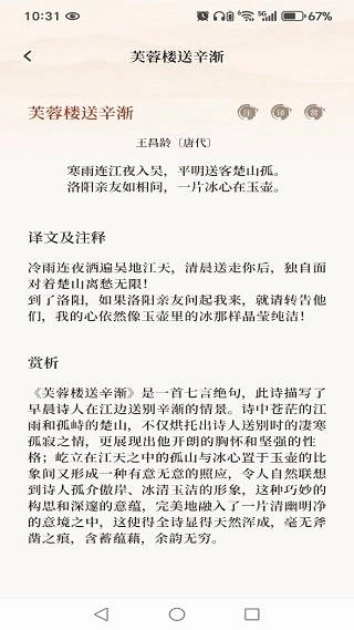 2、查看诗词详情,可了解译文与注释,还能查看赏析内容。