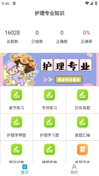 2、首页设有护理专业知识板块,点击即可直接进行刷题练习。