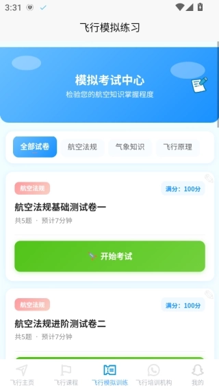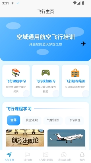 1、首页整合了系统化的飞行课程体系,同时配备了专项训练及模拟操作功能。