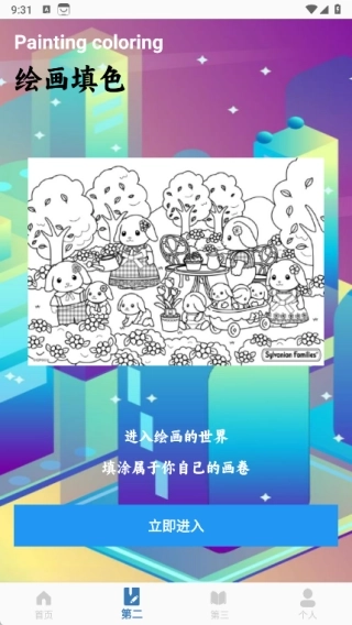 3、在第二页点击“立即进入”后,即可开展快速的绘画填色操作。