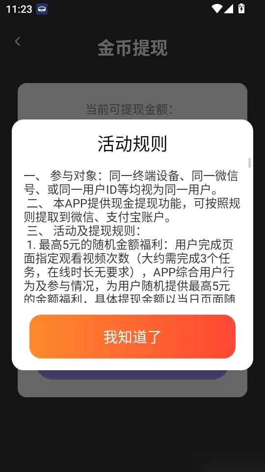 然后找到弹窗界面的“活动规则”功能按键点击进入下一步