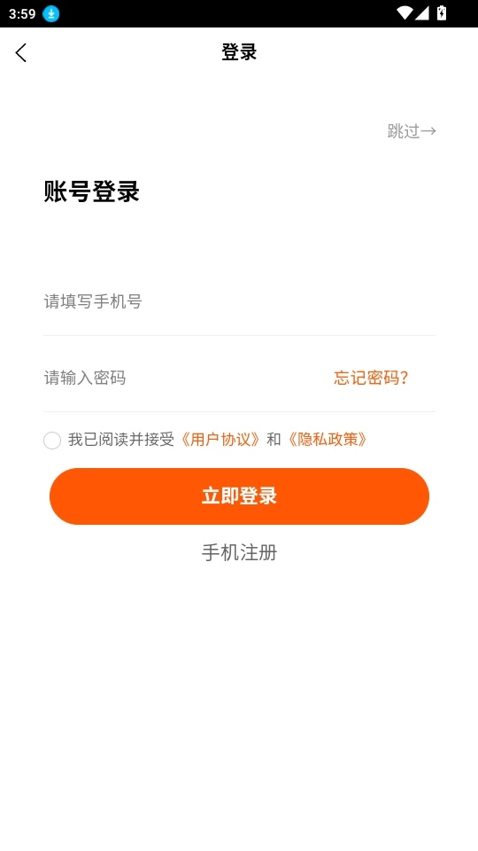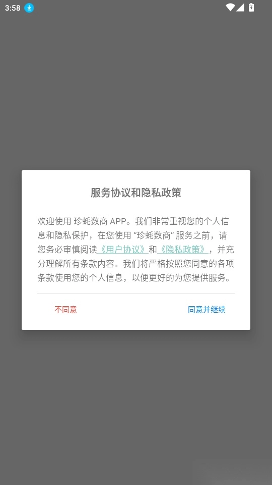 打开软件阅读“服务协议和隐私政策”点击“同意并继续”进入
