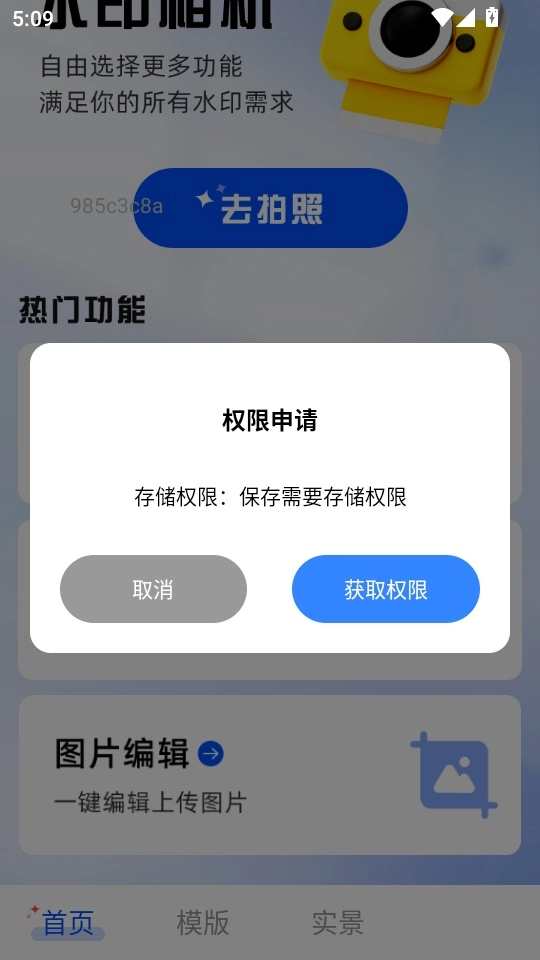 之后会弹出“”权限申请的提示窗口,点击“获取权限”按钮即可进入下一步操作。