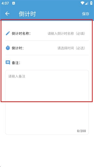 在倒计时页面填写倒计时相关信息,并补充备注内容。