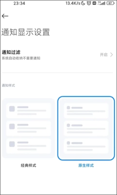 在系统设置里找到“通知管理”,进入后选择“通知显示设置”,将通知样式更改为“原生样式”。