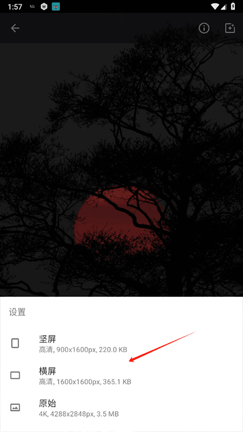 4、然后选择壁纸的尺寸,并等待转换