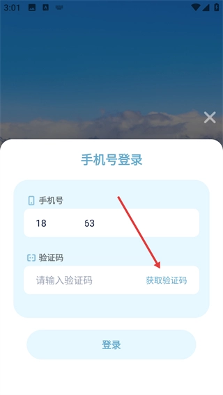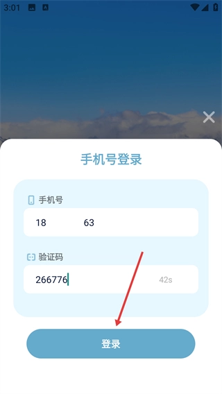 4、在验证码输入框中填写收到的验证码内容,随后点击【登录】按钮提交相关信息,即可完成账号登录操作。