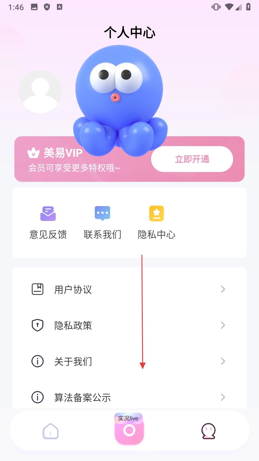 1、点击底部【个人中心图标】,进入个人中心页面。