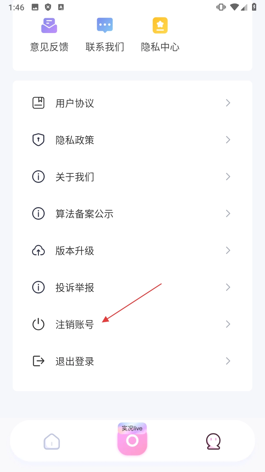 2、进入个人中心页面后,用手指【向下滑动屏幕】,找到“注销账号”这个选项。