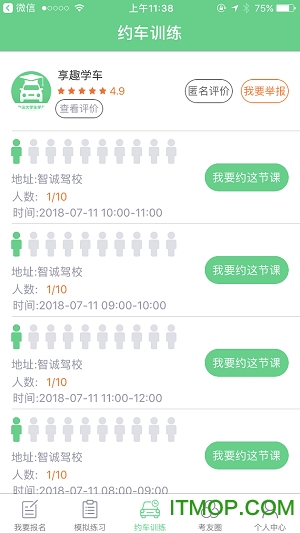 享趣学车配备智能化、流程化的约课系统。在此系统下,教练负责发布课程,学员能够自主选择课程。这不仅让教练工作更轻松,也给予学员更多自由。同时,该系统有效规避了诸如练车等待、扎堆练车以及时间与学员分布不均衡等不良现象。
