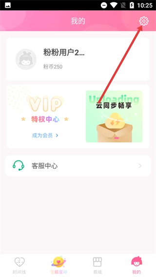 2、进入“我的”页面后,点击右上角对应图标,进入设置界面,可查看账号信息、VIP特权中心等内容。