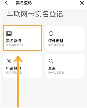 在汽车网卡的实名认证页面上,点击【实名登记】。