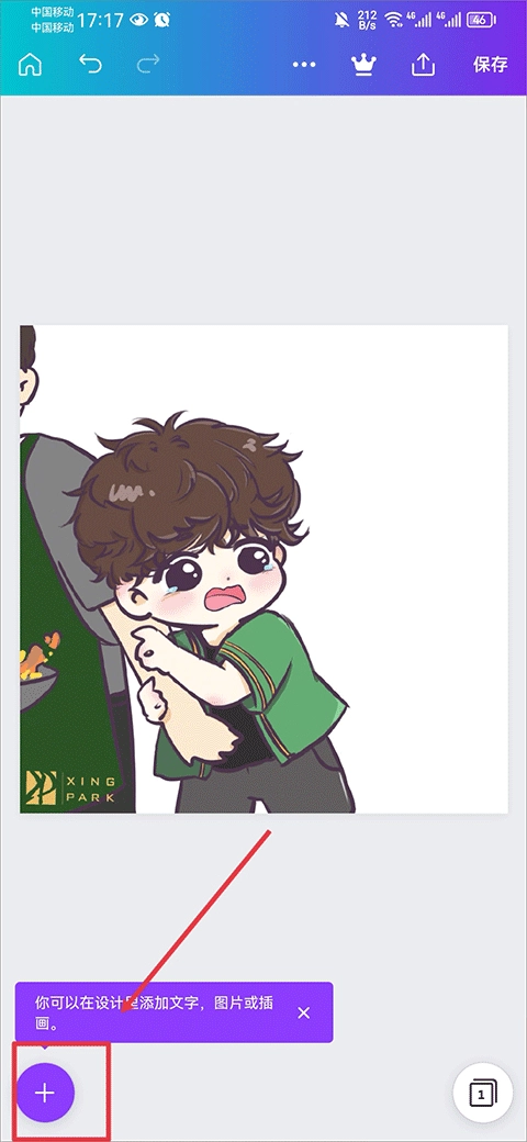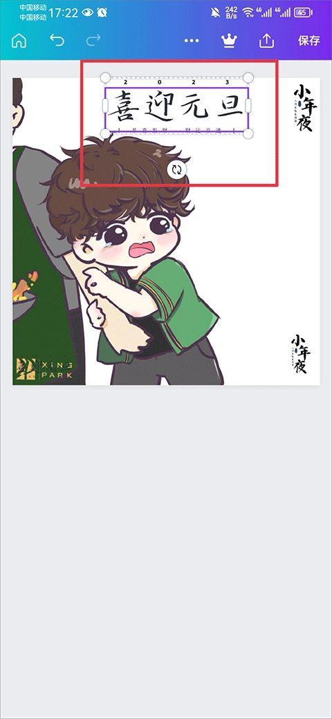 点击后就能在图片里看到这段文字,接着点击文字还能调整它的大小和移动位置。