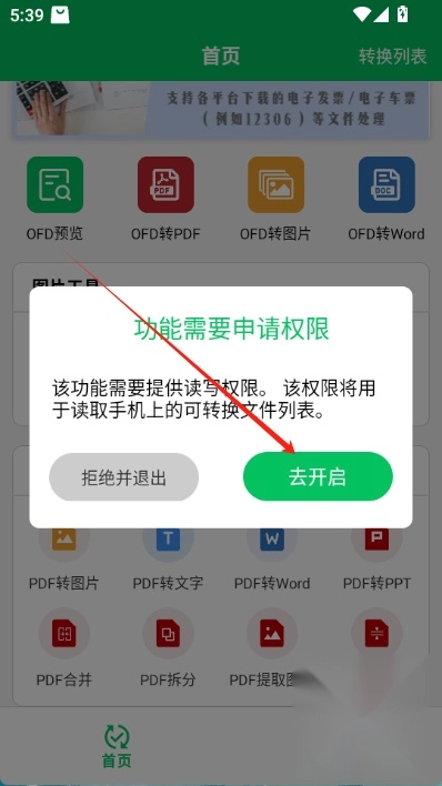 2.魔趣网(m.mfunz.com)为大家演示ofd预览功能的使用方法,点击ofd预览后,在弹出的对话框里选择【去开启】选项。