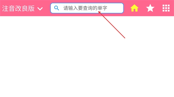 2、打开应用后,先确认顶部的【注音改良版】选项是否已选中,接着点击【请输入要查询的单字】这个搜索框,就可以准备输入想要查询的内容了。