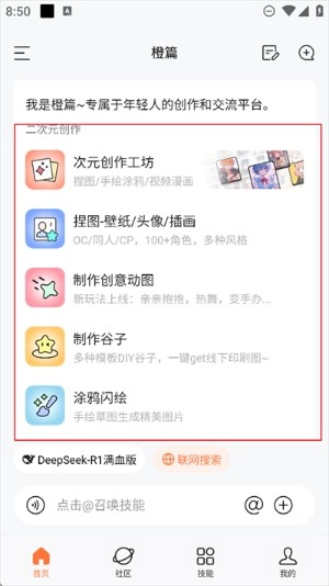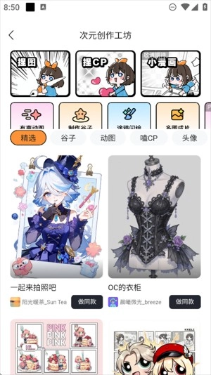 3.回到首页,根据自身需求点击相应功能,例如【次元创作工坊】;