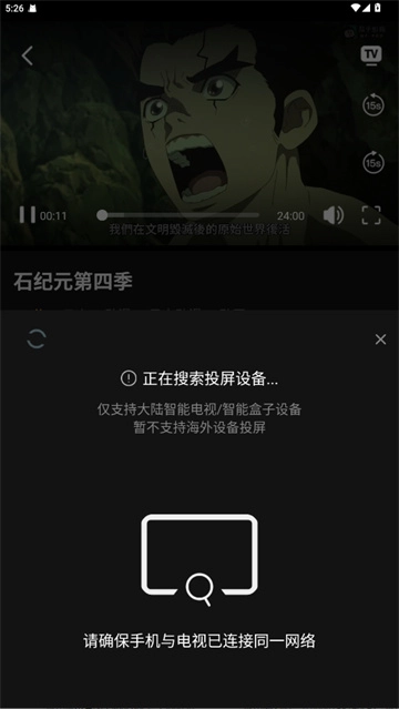 3.确保你的手机和电视连的是同一个WiFi,就能搜到电视啦~选中设备,马上就能大屏开追!