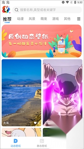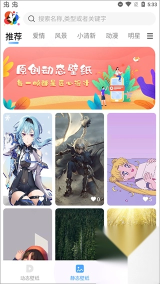 2、进入主界面即可看到主要是划分了动态和静态壁纸