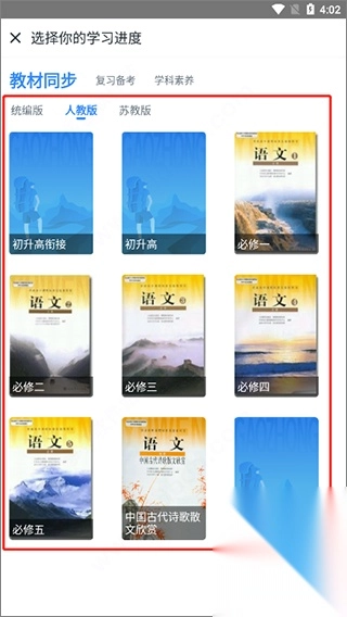 4、此外,使用E讲堂时还支持用户根据自身学习进度选择电子版教材。