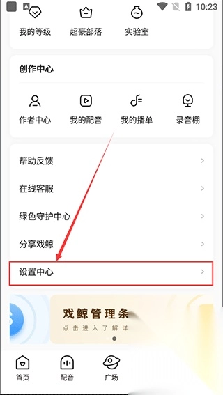 2、我们选择页面下方【设置中心】图标点击进入;