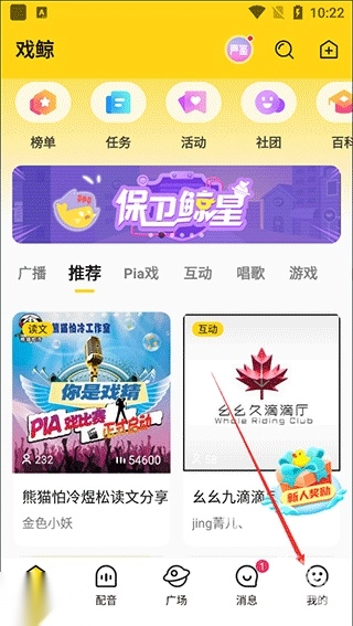 1、首先打开戏鲸,点击底部菜单栏我的选项进入个人中心;