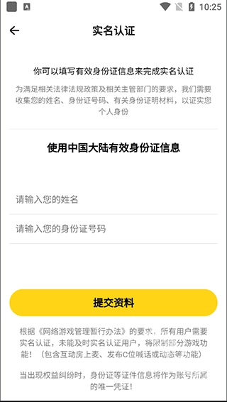 4、进入认证页面,输入自己的认证信息,最后点击提交资料即可。