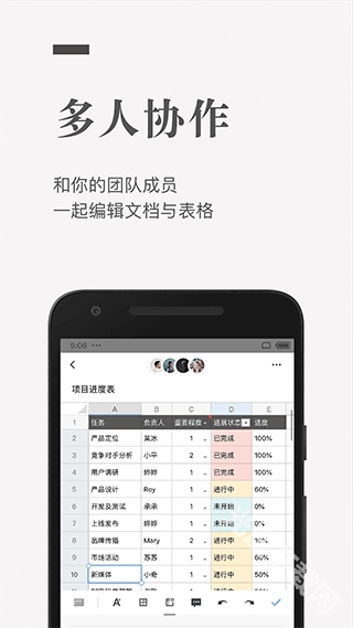 -支持多人在线一起编辑文档,即时同步修改,每个人随时跟上最新消息,告别复杂的电子邮件沟通,提高沟通效率。