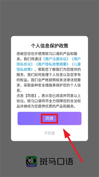 打开斑马口语,先同意个人信息保护政策
