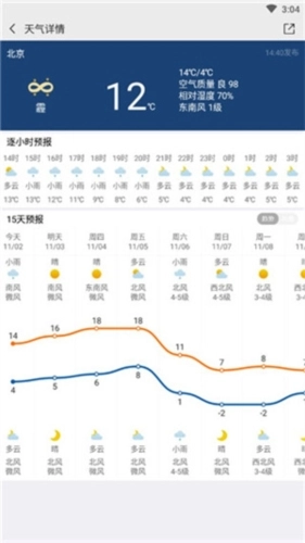 天气简报会发布各项基础的天气预报信息,用户可以从中查看气温、湿度以及风向等内容。