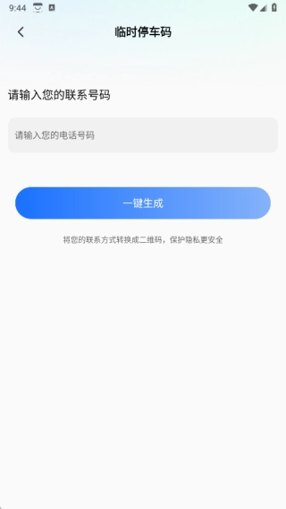 进入临时停车码页面后,只需输入手机号码就能一键生成。