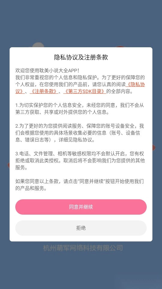 打开软件,阅读“隐私协议及注册条款”后,点击“同意并继续”按钮即可进入。