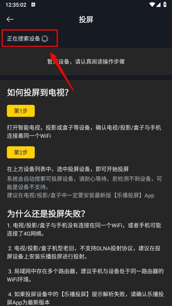 可可影视随即就会开始搜索同一WiFi网络环境下的电视设备。