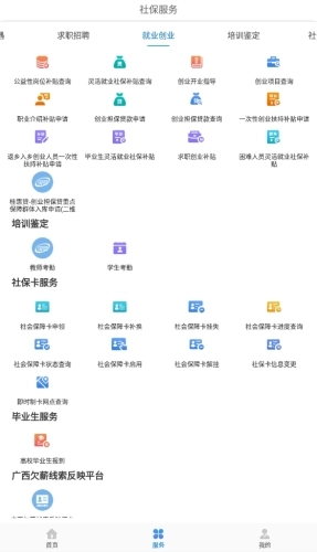 广西人社是一款由广西壮族自治区人力资源和社会保障信息中心发行的专门为广西地区的用户们准备的社保查询软件,该软件中是有很多的关于社保的功能,可以在这里直接查询社保相关的服务,在手机上一键操作。提供本经办机构人员增减变更、缴费人数、各险应缴、各险实缴、养老、失业、工伤、生育待遇发放情况等的查询,反应出上下月对比情况,使您的生活更加便捷。