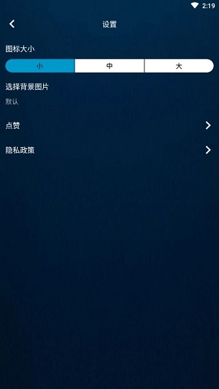 5、点击设置功能,可以设置软件图标的大小,选择背景图片等功能