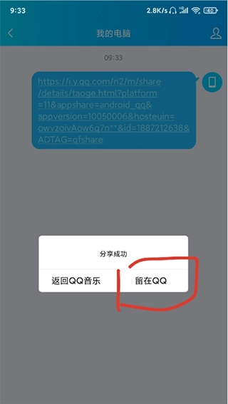 4、分享到电脑成功之后,请选择留在QQ;