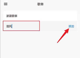 3、在输入框中输入歌单名称,点击添加,如图所示: