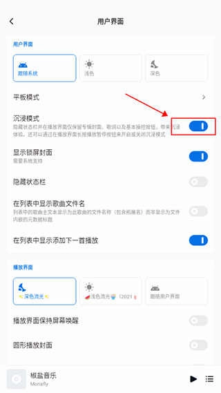 4、最后在用户界面设置中,找到沉浸模式,点击后面的开关按钮,如图所示: