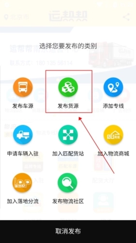 2、其次,我们在【运帮帮】首页中点击【发布】。