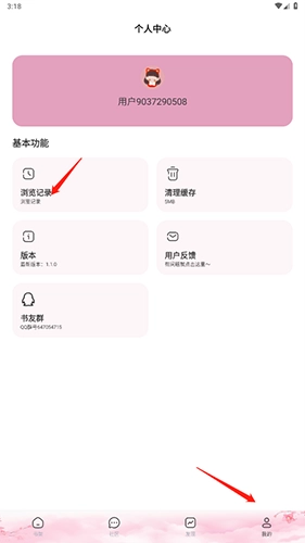 1、启动软件后,找到并点击“我的”选项,接着再点击“浏览记录”选项。