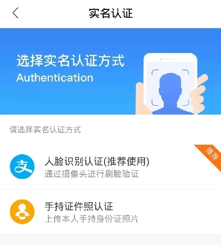 2、在实名认证页面中选择要认证的方式就可以了。