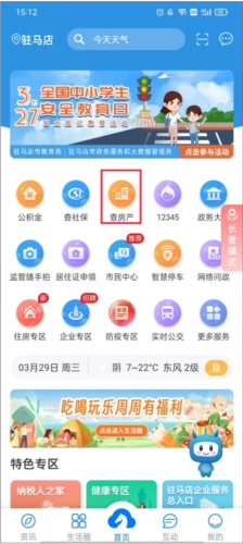 1、依旧在首页界面,点击上方的“查房产”服务入口。
