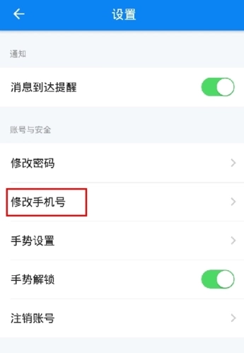 2、在设置页面中点击修改手机号按钮;
