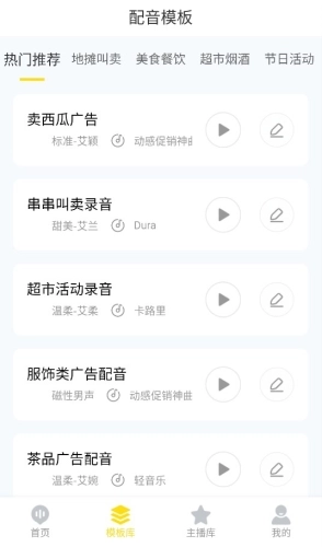 推荐各种配音模版,只用修改文字,就能配出各种场景的语音。
